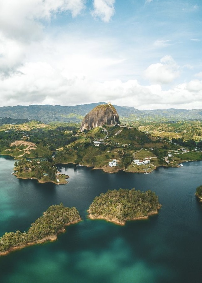 Subiremos (si quieres) la famosa Piedra del Peñol, con una vista espectacular del embalse, y luego pasearemos por el colorido pueblo, conocido por sus zócalos, sus calles llenas de vida y su ambiente alegre.